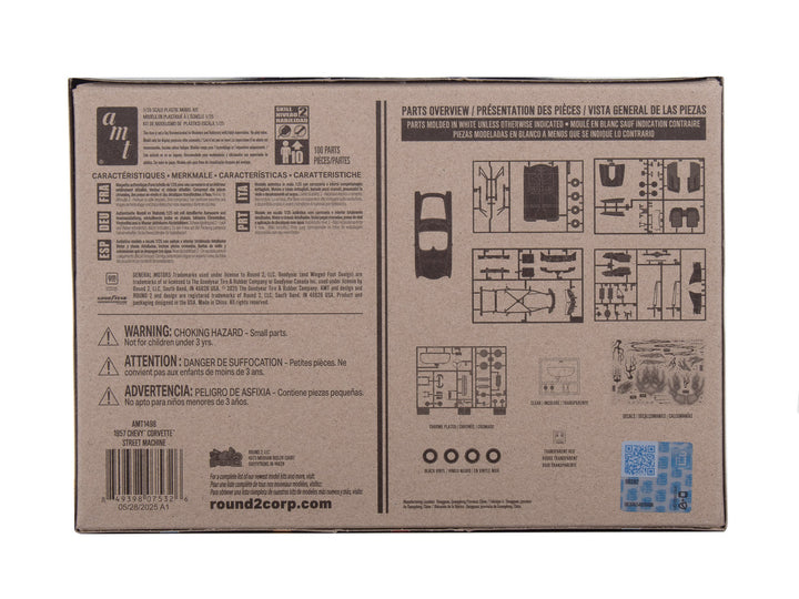 The 1957 Chevy Corvette Street Machine model kit, from our Kustom Kruisers series celebrating classic car culture, is an ideal project for skilled modelers. Add this genuine model to your collection today! It boasts features like a Chevy 454 “Big Block” V-8 engine, fender and hood scoops, wheelie bars, a chrome grille, chrome bezel taillights, custom exhaust headers, and pad-printed Goodyear tires. The kit also includes a brand-new, vibrant set of water-slide decals, all packaged in AMT’s signature Kustom Kruisers style.