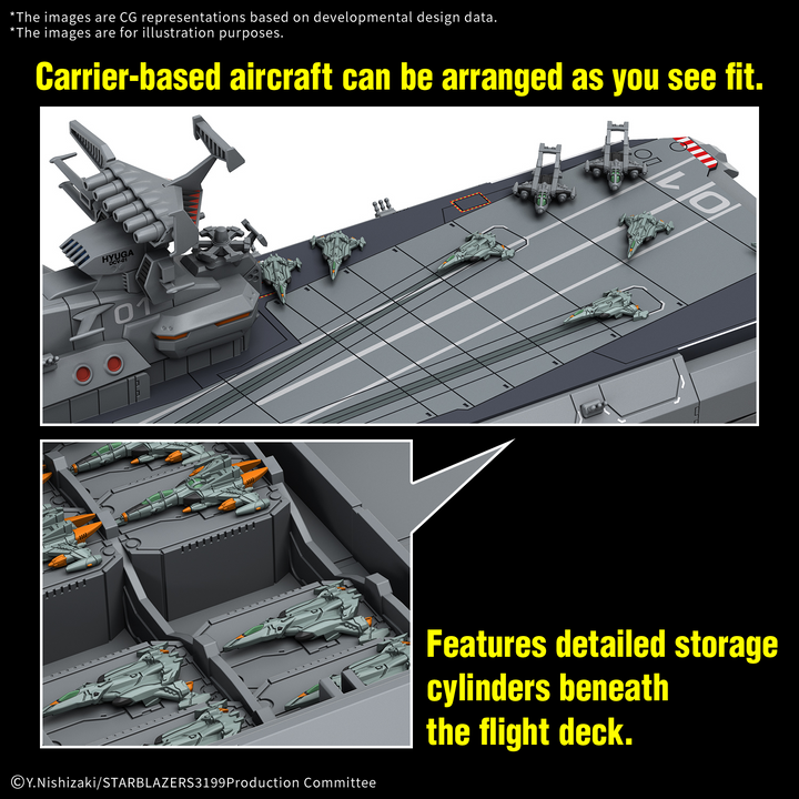 The Hyuga-Class Battlecarrier DCV-01 Hyuga arrives as a stunning 1/1000-scale model kit from Bandai, bringing the iconic warship from Yamato Forever: REBEL 3199 to life. This meticulously crafted kit showcases the vessel's commanding design with intricate details, including hidden internal components visible through the flight deck. The set comes complete with three positionable aircraft—the Cosmo Tiger II, Cosmo Python, and Cosmo Seagull—giving you creative freedom for impressive diorama displays. Enhance your build with optional LED units (sold separately) to highlight the ship's features with authentic lighting effects. The included display stand provides secure presentation, while compatibility with the Action Base 8 (sold separately) opens up even more dynamic display possibilities. Perfect for collectors and modelers seeking a premium, detailed centerpiece.