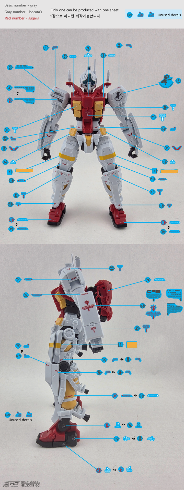 Delpi Water Decal for Gelgoog Bocata's or Sugai's HGGQX 1/144 model kit. You can choose to produce only one of the two. No model kit included.