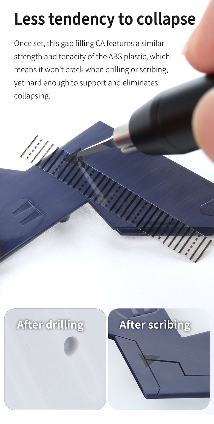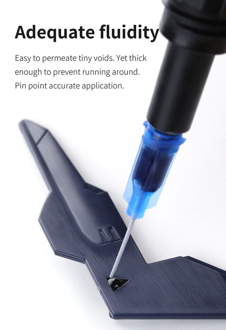 Simple Use. Excellent Infiltration. No Mixing Required. Easy Sanding. Low Odor. Precise Application. Multi-Purpose. Fast Curing. Difference Between Black and White Glue: White: White filling glue suits parts and painting schemes...