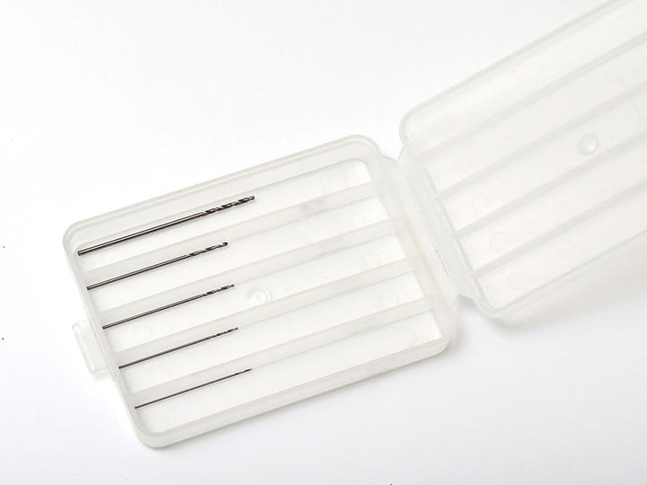 This handy set contains five different sizes of drill bit for use in a variety of modeling applications. They can be used on plastic and softer metals like aluminum. The set comes with a plastic storage case and sticker to separate the different diameters of bit.