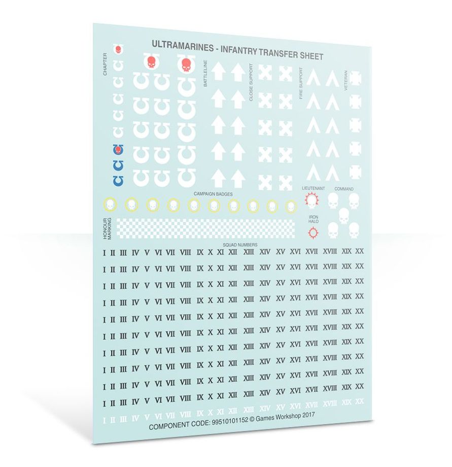 This plastic kit contains 179 components with which to make a 10 man Tactical Squad (and so much more!). Also included are 2 Ultramarines Infantry Transfer Sheet with which to add Chapter iconography and squad markings.