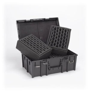 Packing and unpacking the case is absurdly quick and easy – any model, however pointy, placed anywhere within the channels will be protected as well as if you’d spent countless hours hacking away at a custom fit. You’ll free up more time to concentrate on games, painting, or just showing off your miniatures collection. The channel foam is as efficient a use of space as possible, allowing you to store more models more safely than any other case.